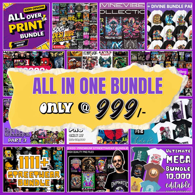 Introducing the All-in-One Mega Bundle โ€” your complete print-on-demand weapon to dominate both Indian and international markets.